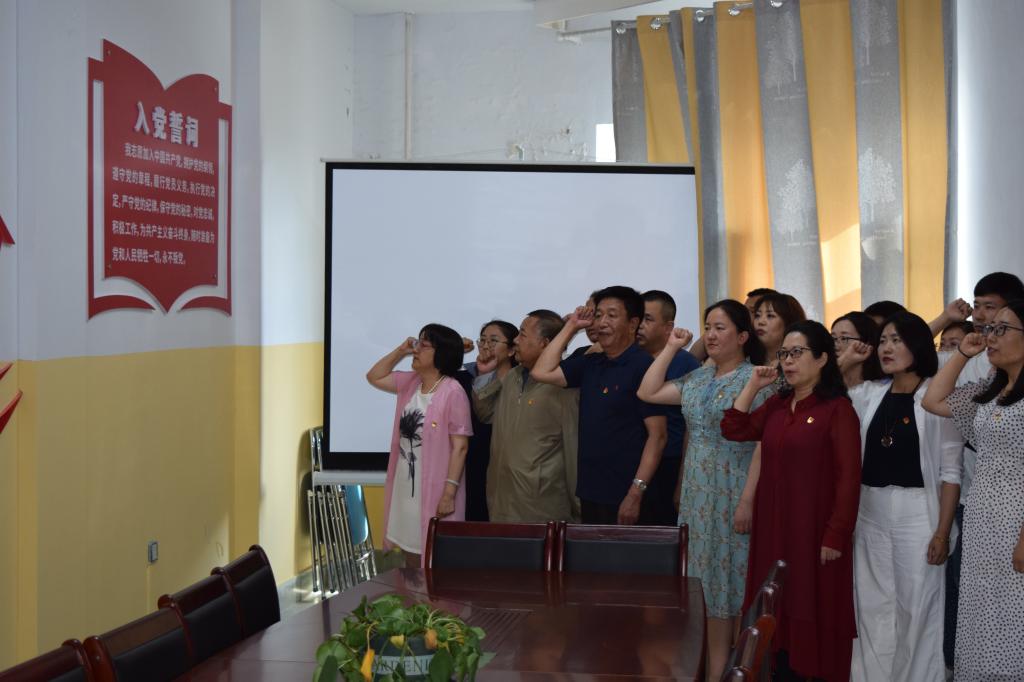 最后,與會人員開展“喜迎二十大、重溫入黨誓詞”主題黨日活動。在教工黨支部書記楊貴玉的帶領下,全體黨員高舉右拳,字字鏗鏘,重溫入黨誓詞:“我宣誓,我志愿加入中國共產黨,擁護黨的綱領……隨時準備為黨和人民犧牲一切,永不叛黨……”。擲地有聲、鏗鏘有力的宣誓,彰顯出全體黨員堅定不移聽黨話、矢志不渝跟黨走的政治信念。
