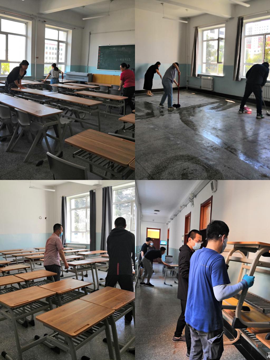 為迎接新學(xué)期做好準備,6月23日,外國語學(xué)院組織教師打掃師專樓教室衛(wèi)生。