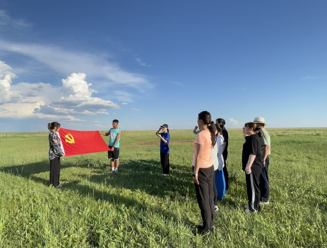 在新巴爾虎左旗新寶力格蘇木,體育學院2022年暑期“三下鄉”實踐團隊黨小組成員與新寶力格蘇木的黨員一同重溫入黨誓詞。誓言錚錚,回響不絕,鞭策著黨員同志們堅定信念,與時俱進,永葆初心。胡日查副書記代表體育學院向新巴爾虎左旗新寶力格蘇木捐贈橄欖球、籃球、足球等體育用品,讓當地的居民體驗運動項目的快樂。
