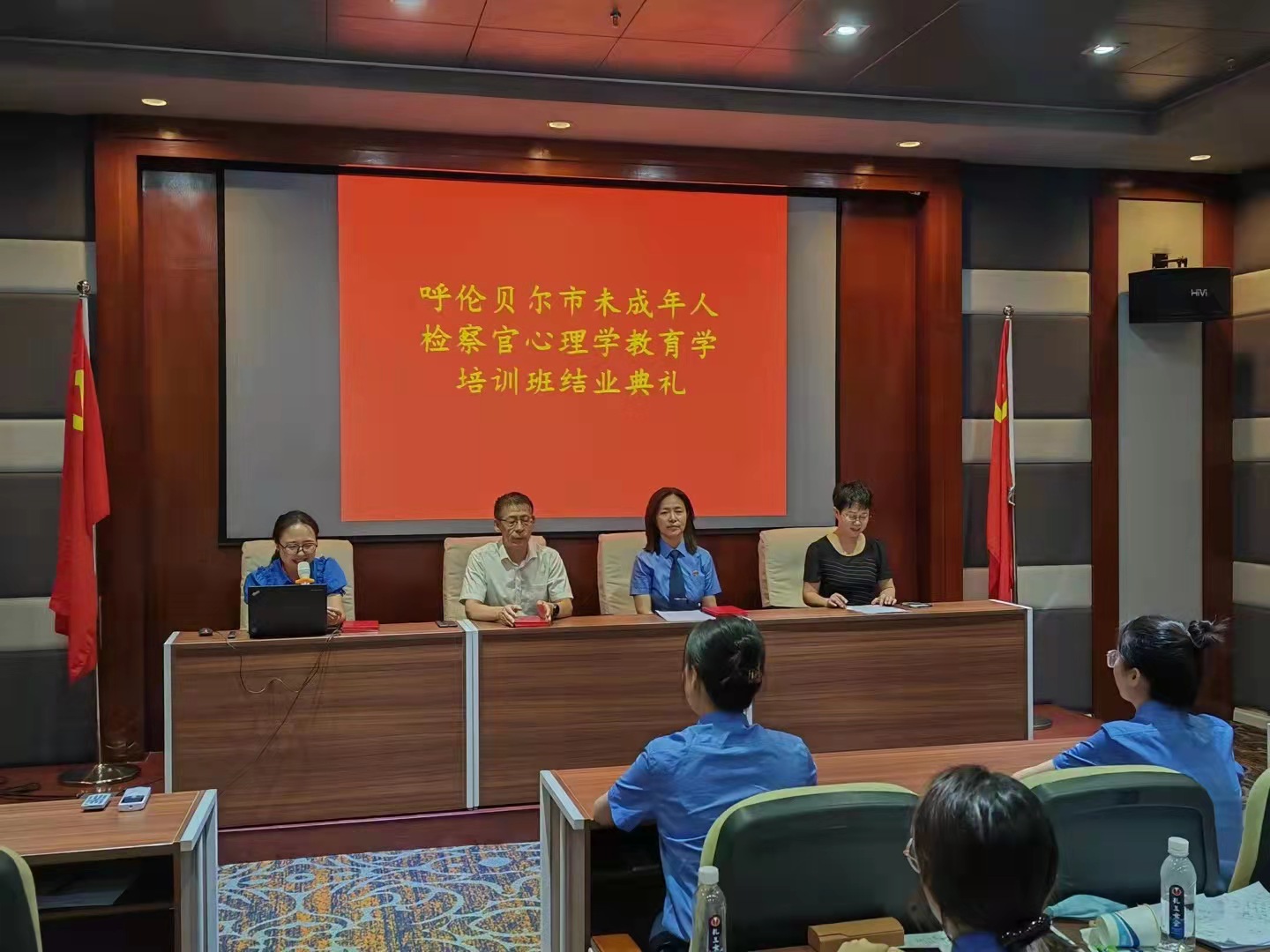 7月30日,該項目培訓班結業典禮在呼倫貝爾市人民檢察院培訓中心會議室舉行,我校教育學院院長王毅、副院長關宇霞和第八檢察部主任那日斯參加典禮并為學員頒發結業證書和優秀學員榮譽證書。該項目歷時三年,開設21門課程,共計306學時,通過學習,學員掌握了心理學基礎理論知識和基本技能,并將心理健康知識遷移至工作、生活和個人成長中。最后該項目在心理實操匯報演練中圓滿收官。