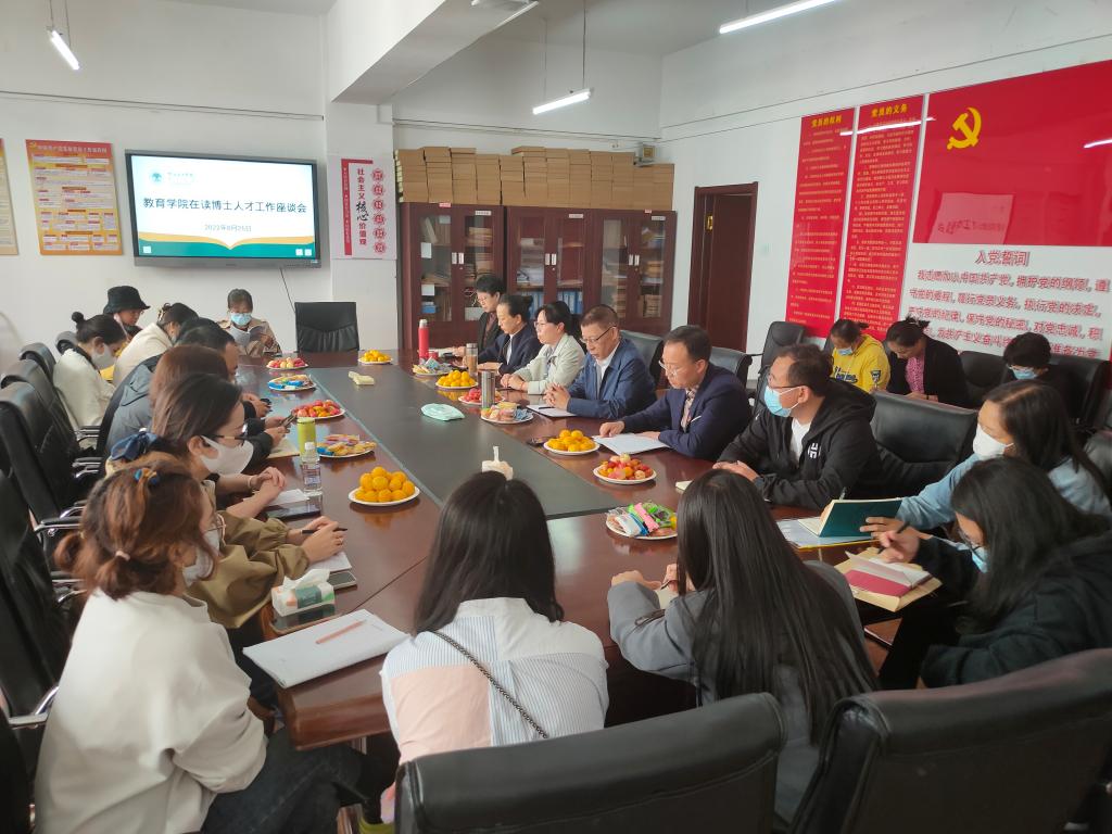 8月26日下午,教育學(xué)院在藝術(shù)樓201會議室召開在讀博士人才工作座談會。黨總支書記付剛主持,學(xué)院領(lǐng)導(dǎo)班子、教授、全體博士及在讀博士和環(huán)節(jié)干部參會。