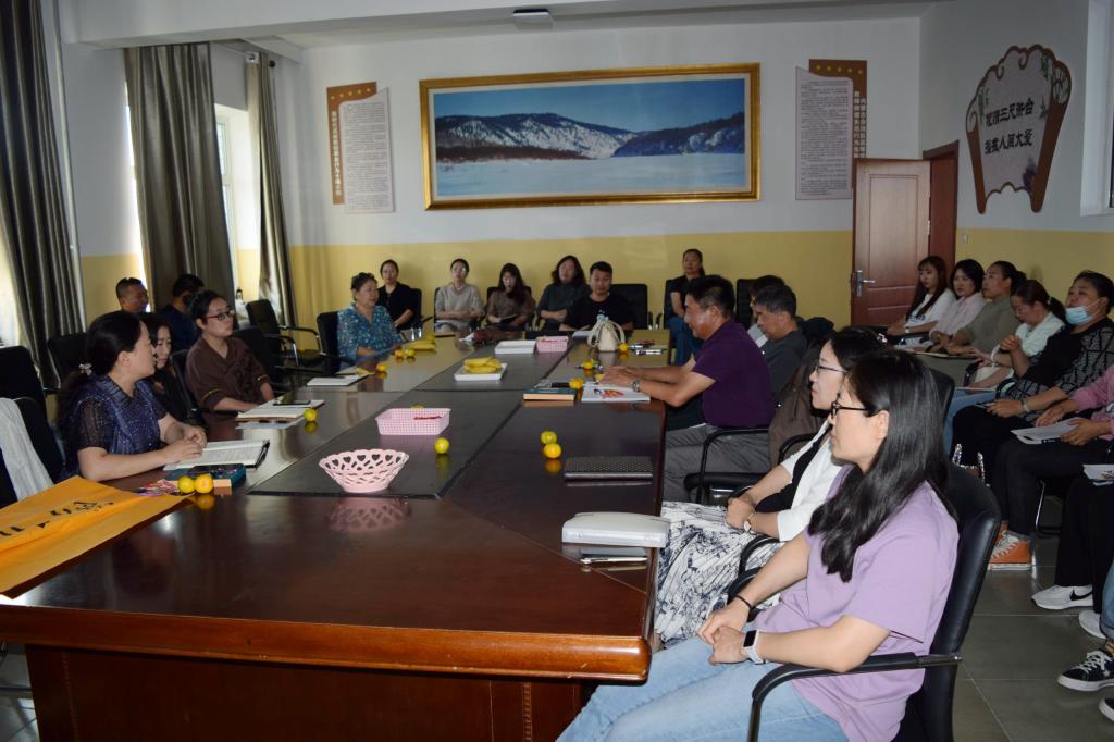 會上,黨總支書記宋旭霞帶領全體教師學習《內蒙古自治區教育條例》和《呼倫貝爾學院校園創建宣傳手冊》。