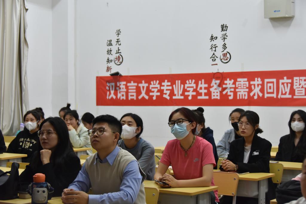 9月25日,文學院漢語言文學專業舉辦大四學生備考需求回應會。根據疫情防控需要,本次回應會采用線上線下結合形式進行,主會場設在崇文樓B602一流專業教室,部分學生和老師在云端參與。院長曹存有,副院長蔡文婷,實訓中心主任曲建華和漢語言文學系主任陳艷華等參加了此次回應會。