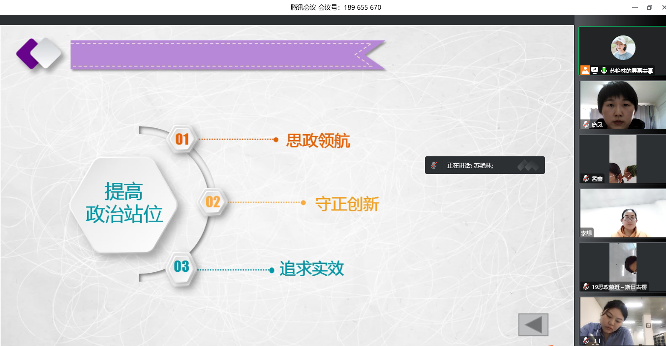 為了更好適應教育部師范類專業認證的新要求,進一步加強專業建設,馬克思主義學院組織開展“中學政治教師素質養成”系列講座。首期于9月24日開講,邀請到鄂爾多斯市東勝區教學基本功競賽(中學政治組)一等獎蘇艷林老師為學院學生作“上好思政課 做好引路人”線上主題講座。講座由學院龐鳳老師主持,學院全體學生在線參加。