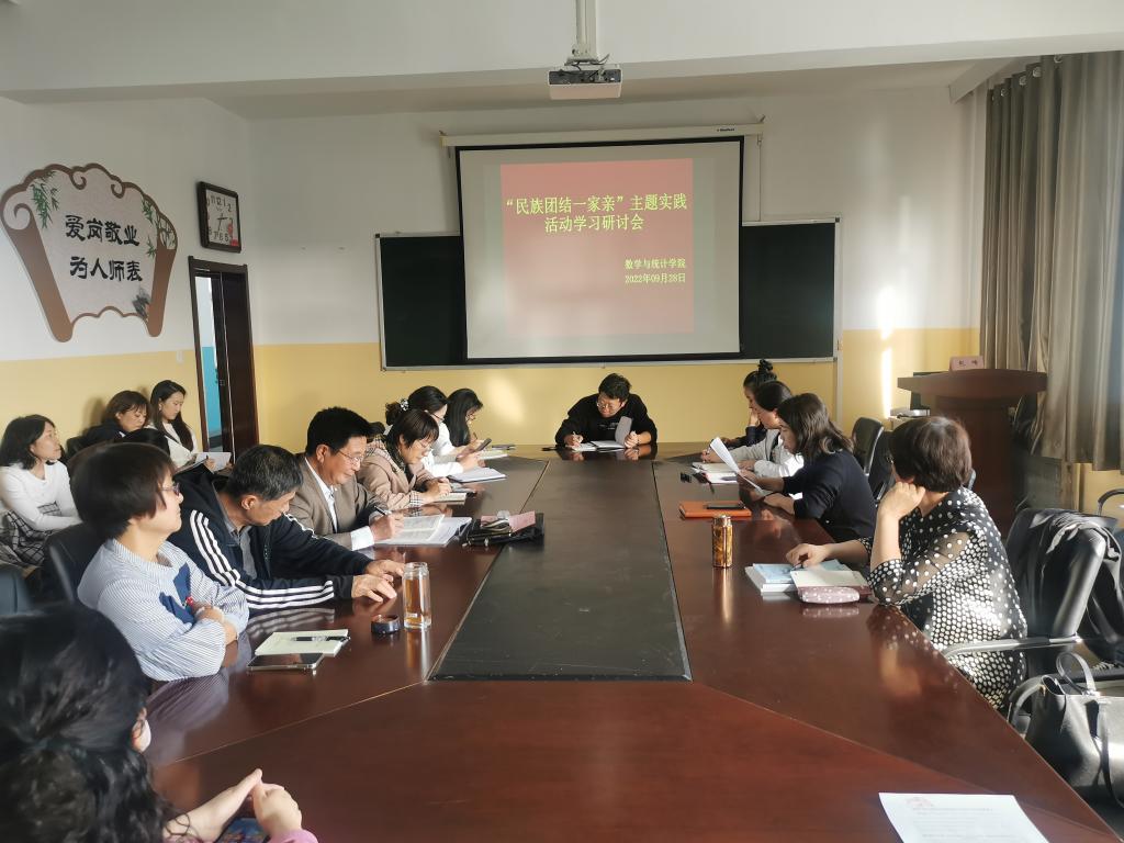 9月28日下午,數(shù)學(xué)與統(tǒng)計(jì)學(xué)院教工黨支部開展“民族團(tuán)結(jié)一家親”主題實(shí)踐活動(dòng)學(xué)習(xí)研討會(huì),教工黨支部書記白紅梅主持會(huì)議,全體教師黨員參加學(xué)習(xí)。