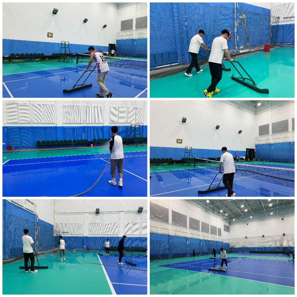 活動中,學(xué)生們來到網(wǎng)球館,積極踴躍地開展志愿服務(wù)。在勞動過程中,學(xué)生們認真清掃地面,并用水反復(fù)沖刷,最后用專業(yè)場地清理器仔細清理場館場地每個角落。整個志愿服務(wù)活動過程分工明確、井然有序,充分展現(xiàn)了他們不怕臟、不怕累,積極奉獻的精神風貌。