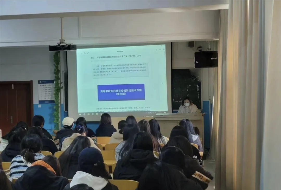各班輔導員帶領學生們學習了《新型冠狀病毒肺炎防控方案(第九版)》《高等學校新冠肺炎疫情防控技術方案(第六版)》。通過方案的學習讓大家更加了解疫情防控工作的嚴峻性與重要性,提示大家在校園內要全程佩戴好口罩,注意寢室衛生,及時開窗通風,按時進行健康打卡,做核酸保持一米距離。
