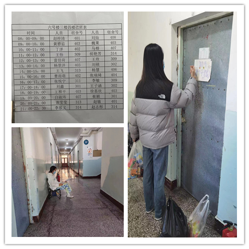 在封閉管理期間,學(xué)院學(xué)生黨員、學(xué)生干部充分發(fā)揮引領(lǐng)帶頭作用,主動作為、聽從調(diào)度,以實(shí)際行動彰顯先鋒模范作用。他們有的協(xié)助教師組織本院學(xué)生按時參加核酸檢測,以“敲門服務(wù)”確保不落一人;有的負(fù)責(zé)核對信息,確保數(shù)據(jù)真實(shí)、準(zhǔn)確;有的學(xué)生響應(yīng)學(xué)院號召,提供志愿服務(wù)。