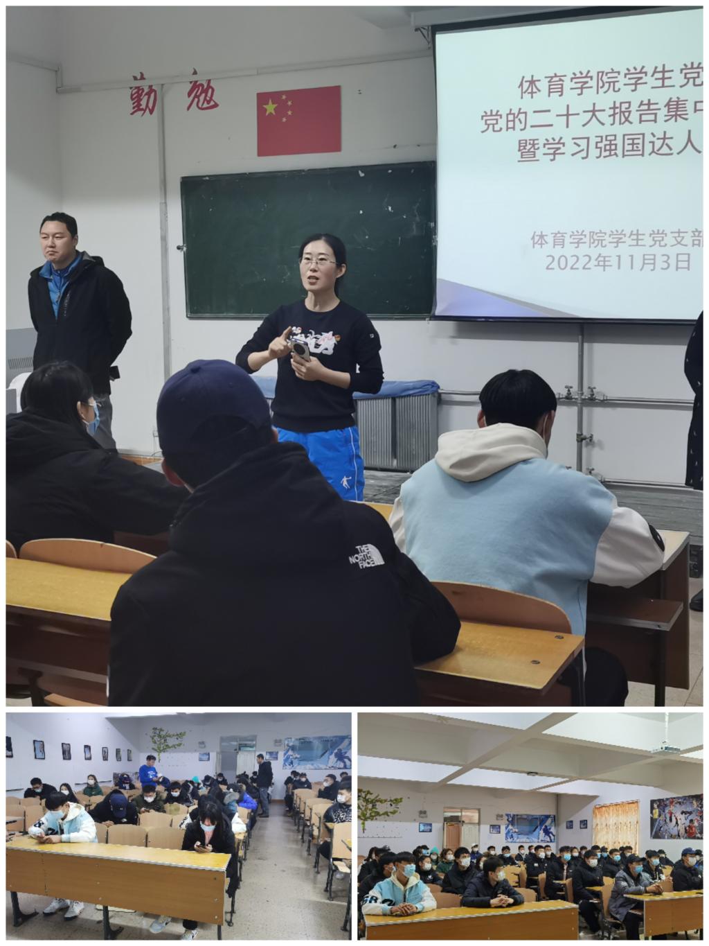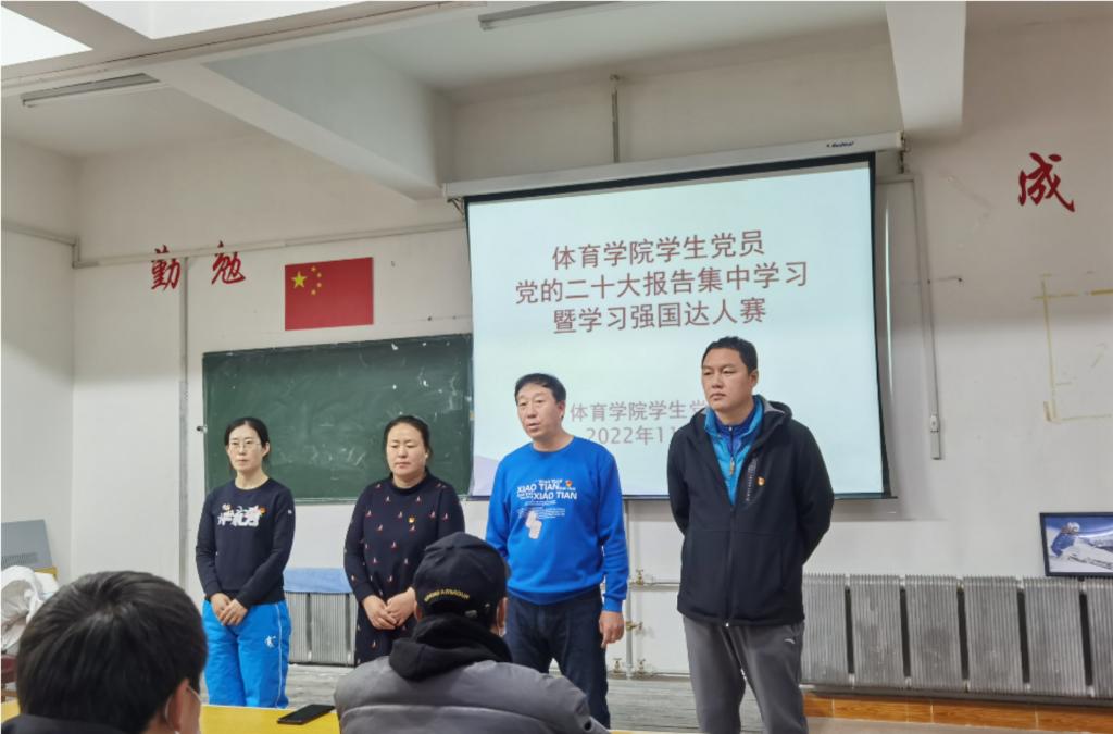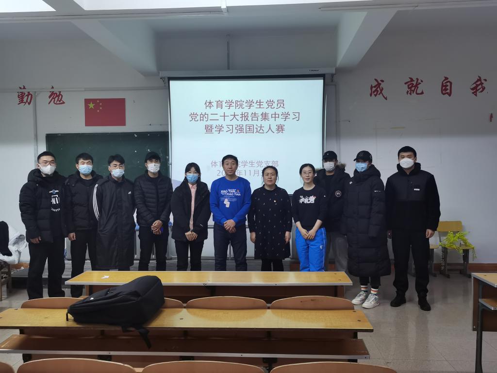 為深入學習宣傳貫徹黨的二十大精神,進一步加強學生黨員理論學習,提高全體學生黨員政治理論素養,11月3日上午,體育學院學生黨支部在體育館二樓多媒體教室開展了“學習二十大永遠跟黨走奮進新時代”為主題的學生黨員集中學習黨的二十大報告活動暨“學習強國”達人賽。活動由學生黨支部書記卜祥云主持,學院黨總支書記李偉艷,副書記胡日查,社會體育指導與管理系系主任李嘉麟,學院大三、大四兩個年級共45名學生黨員參加了此次活動。