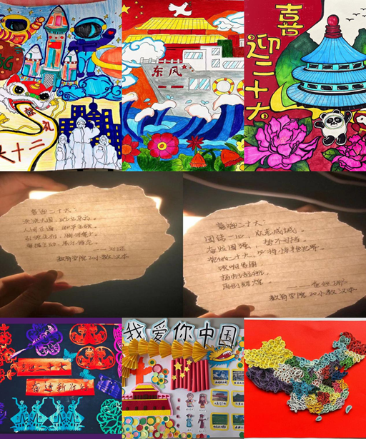 學生們繪制一張張精美的抗擊疫情宣傳海報,海報內容主題鮮明、生動形象,體現了學校師生同舟共濟、眾志成城戰疫情的動人場景;一件件獨具特色、制作精美、彰顯優秀傳統文化的手工藝品,喜迎黨的二十大的勝利召開,表達對黨的忠誠和熱愛,祝愿偉大祖國繁榮昌盛,人民幸福安康;一封封手寫信表達大學生青春心向黨、永遠跟黨走的情懷以及對黨的二十大勝利召開的祝福;一條條短視頻積極傳播正能量,用獨有的浪漫方式踐行“強國有我,請黨放心”的錚錚誓言。