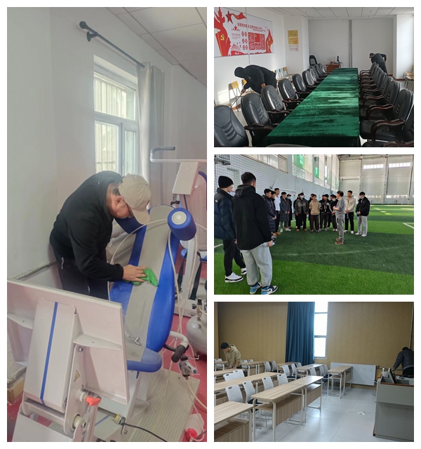此次大掃除區(qū)域主要圍繞東山體育場、中俄蒙足球館室內(nèi)各個場館以及戶外教學(xué)場地進行清掃。學(xué)院黨總支副書記胡日查帶領(lǐng)劉國光、白長慶兩位住校班主任給參與大掃除的學(xué)生們進行了分組并劃分任務(wù)區(qū)。隨后,清掃工作有序開展。
