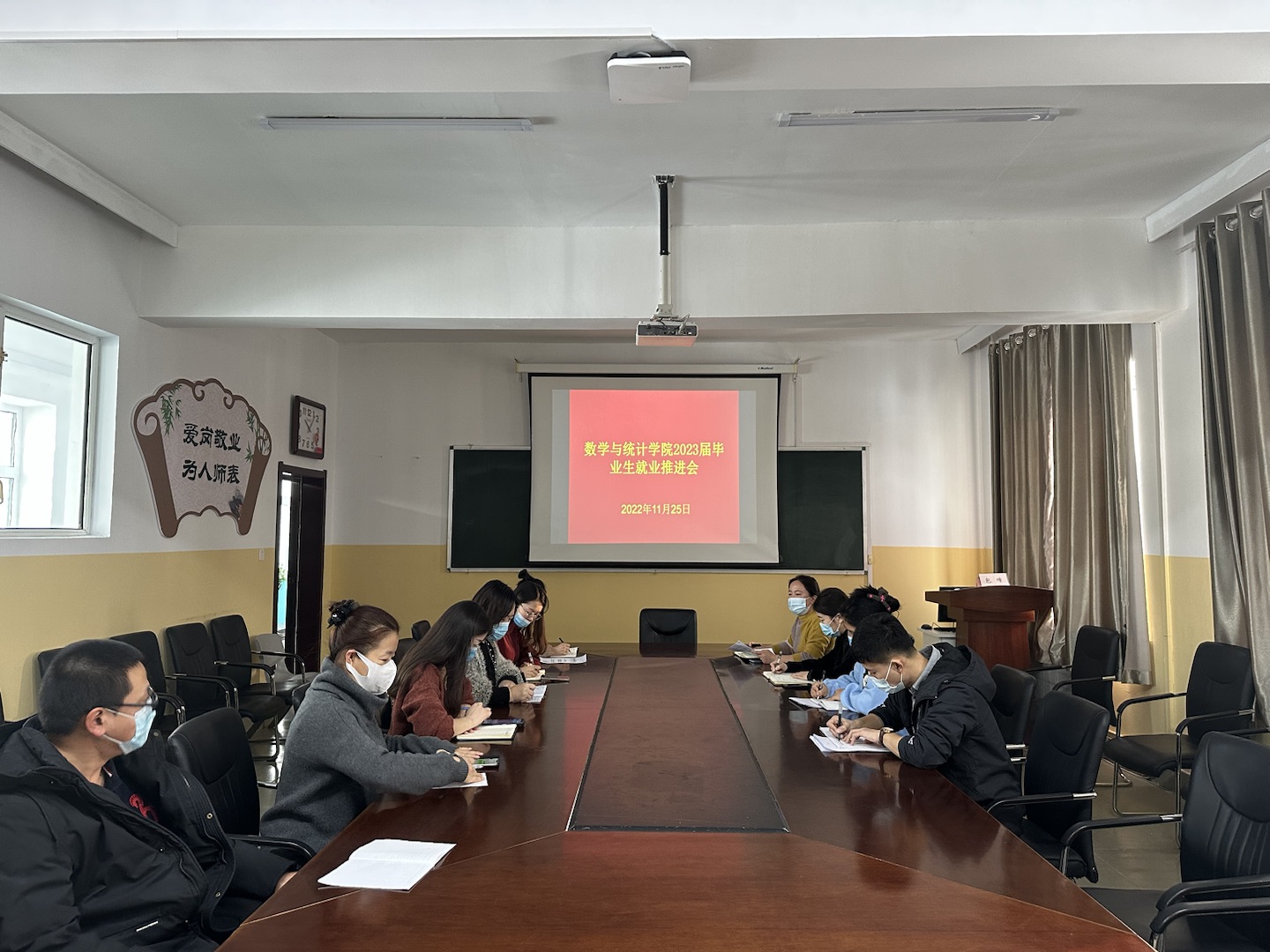 11月25日上午,數(shù)學(xué)與統(tǒng)計學(xué)院在篤學(xué)樓410會議室召開2023屆畢業(yè)生就業(yè)工作推進(jìn)會。學(xué)院院長張桂芝、黨總支副書記烏日拉、團學(xué)辦主任敖巖輝、副主任劉金波以及全體輔導(dǎo)員參加會議。黨總支書記宋旭霞主持會議。