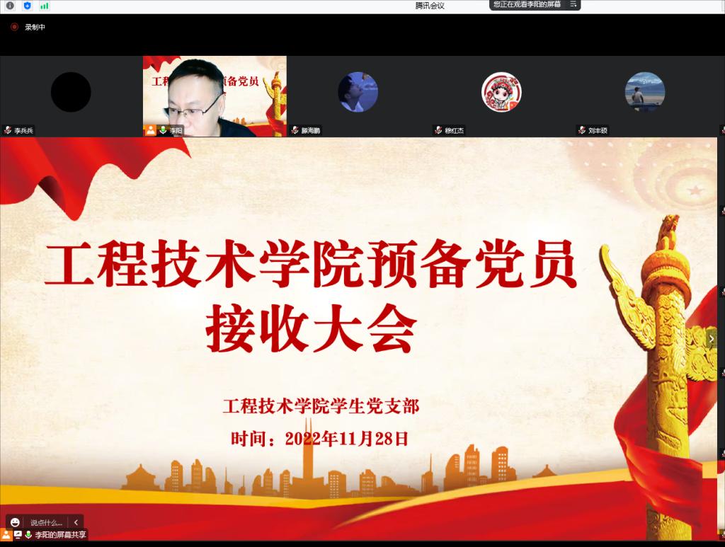 11月28日,工程技術學院學生黨支部在線召開2022年下半年預備黨員接收大會。學院黨總支書記官志文、12位發展對象、學生黨支部所有黨員參會。會議由學生黨支部書記李陽主持。