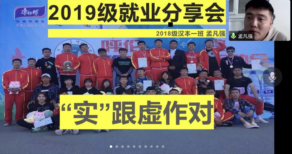 為進一步做好2023屆畢業生就業創業工作,根據《呼倫貝爾學院2023屆畢業生校園招聘月系列活動方案》,12月21日上午,體育學院邀請學院往屆畢業生2018級體教漢本班學生孟凡強和孫穎在線為2023屆全體畢業生做了就業經驗分享會,學院黨總支書記李偉艷、副書記胡日查、團學辦全體教師和班主任參加了本次會議。