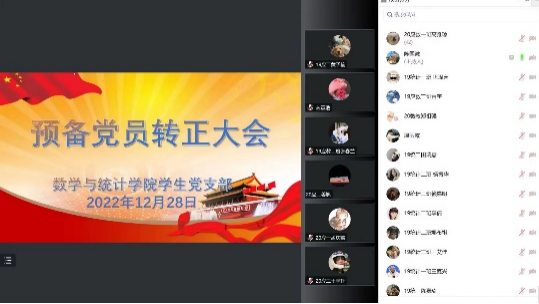 12月28日,數(shù)學(xué)與統(tǒng)計(jì)學(xué)院學(xué)生黨支部在線上開展了預(yù)備黨員轉(zhuǎn)正大會(huì),本次會(huì)議由學(xué)生黨支部書記張娟主持,支部全體黨員參加會(huì)議。