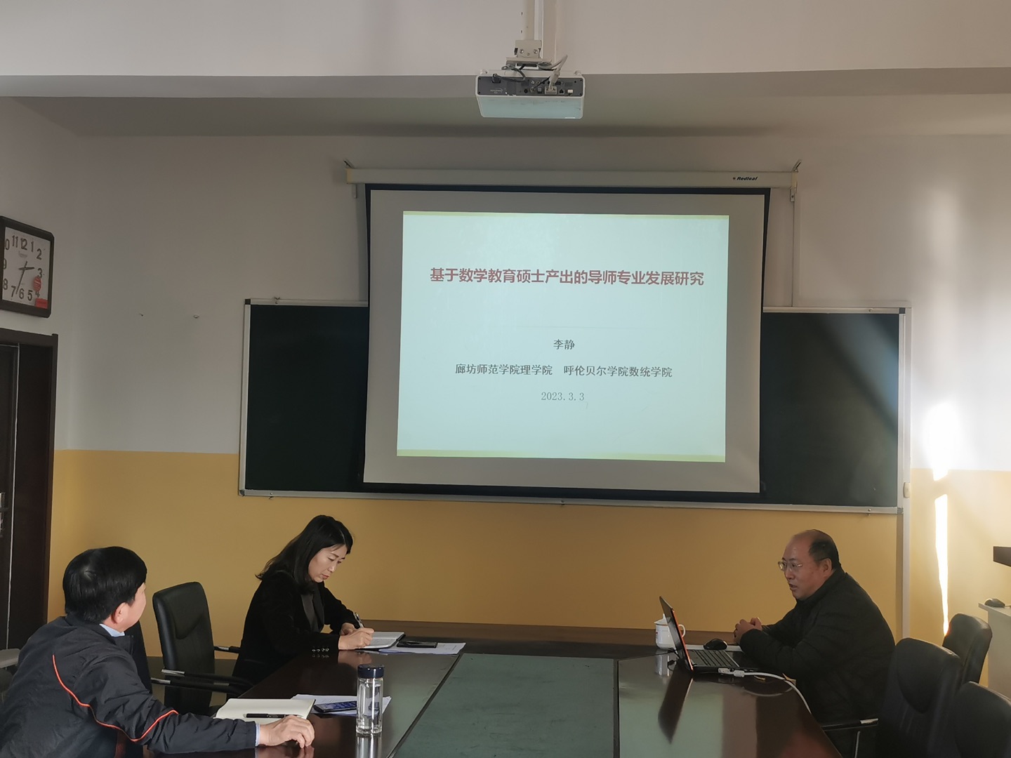 3月4日下午,數(shù)學(xué)與統(tǒng)計(jì)學(xué)院邀請(qǐng)廊坊師范學(xué)院李靜教授在篤學(xué)樓410與學(xué)院教師進(jìn)行座談。座談會(huì)由學(xué)院院長(zhǎng)張桂芝主持。