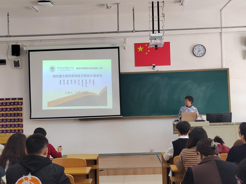 為了擴(kuò)寬教師們的學(xué)術(shù)視野,豐富學(xué)生們的學(xué)習(xí)內(nèi)容,3月15日下午,蒙古學(xué)學(xué)院在崇文樓B302教室組織開展了學(xué)術(shù)講座活動(dòng)。學(xué)院包艷花教授做了題為《現(xiàn)代蒙古語形容詞語義特征計(jì)量研究》的學(xué)術(shù)講座,講座由學(xué)院院長(zhǎng)白秀峰教授主持,學(xué)院全體教職工及2021級(jí)中國少數(shù)民族語言文專業(yè)一班學(xué)生共60余人聆聽了本次講座。