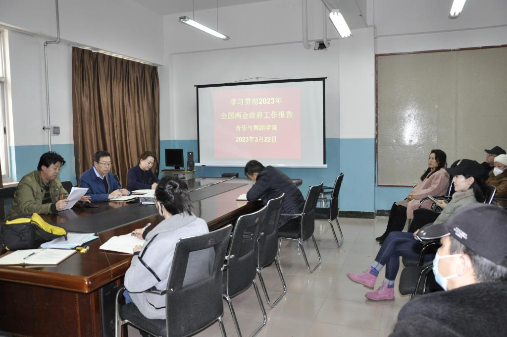 3月22日下午,音樂與舞蹈學院在藝術樓606會議室召開全體教職工會議,學習貫徹2023年全國兩會精神,學習政府工作報告,會議由黨總支書記李雅杰主持、領學。