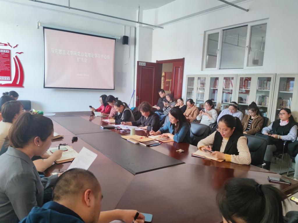 3月29日下午,馬克思主義學院黨總支在崇文樓B座123會議室召開學院黨總支理論學習中心組理論學習擴大會議。學院黨總支書記劉鳳琴主持會議,學院全體教師參加。