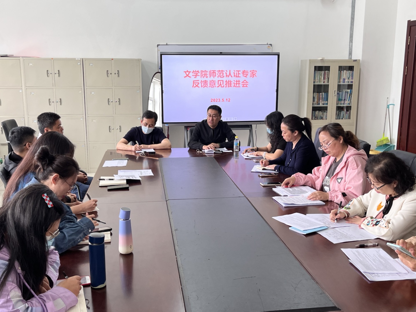 為切實(shí)做好漢語(yǔ)言文學(xué)專業(yè)師范認(rèn)證工作,5月12日下午,文學(xué)院在崇文樓B407會(huì)議室召開文學(xué)院師范認(rèn)證專家反饋意見推進(jìn)會(huì)。學(xué)院院長(zhǎng)曹存有主持會(huì)議,全體班子成員及專業(yè)認(rèn)證相關(guān)人員參會(huì)。