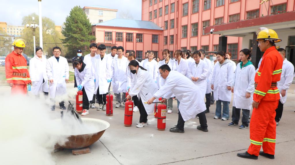 隨后,在知行樓門前由校園安全管理處專業(yè)人員為師生講解了消防安全知識、火災(zāi)初期撲救方法、火災(zāi)時逃生方法和注意事項,演示了滅火器、滅火毯等消防器材正確使用方法,并指導(dǎo)師生進行滅火器使用的實際操作。