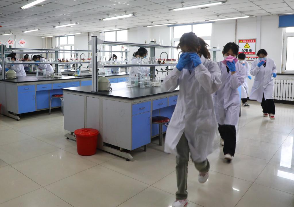 演練中,實驗教師講解了危險化學(xué)品泄漏后的規(guī)范化應(yīng)急處置流程,強調(diào)了危險化學(xué)品泄露時學(xué)生自我保護的措施與應(yīng)急疏散時的注意事項,指導(dǎo)開展模擬濃硫酸泄漏的應(yīng)急處置,并組織學(xué)生按樓層、分前后、有秩序疏散。