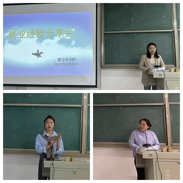 為了讓畢業生更準確的定位自己,有針對性的做好職業規劃,更快更好的了解社會、融入職場,5月23日晚,蒙古學學院邀請了往屆優秀畢業生錫林高娃、那日森和都拉漢等三位學生為2019級、2020級學生開展就業典型經驗分享會。學院黨總支書記格根塔娜,院長白秀峰,黨總支副書記孔春艷參會。會議由蒙古學學院團學辦主任額爾布樂圖主持。