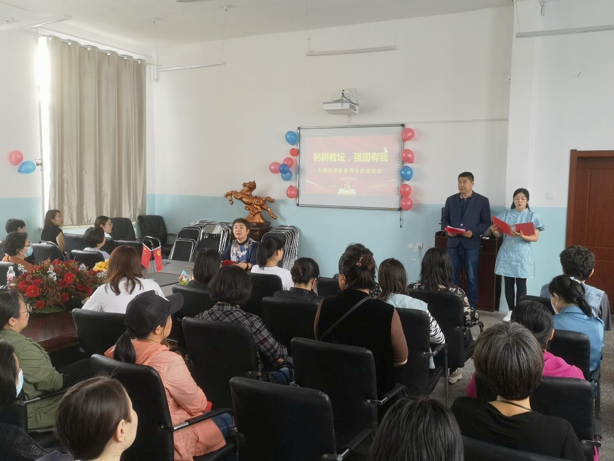 在第39個教師節來臨之際,9月6日下午,外國語學院在師專樓301會議室以“躬耕教壇、強國有我”為主題開展了豐富多彩的教師節慶祝活動,學院全體教師及學生代表參加了本次活動。活動由教師沈程程和包東學主持。