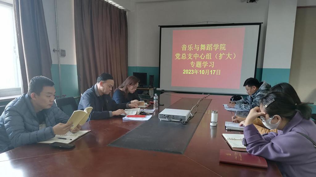 10月17日,在藝術樓606會議室,音樂與舞蹈學院黨總支召開了中心組(擴大)專題學習會。學習會由學院黨總支書記包德主持,班子成員、副科級以上干部參加。