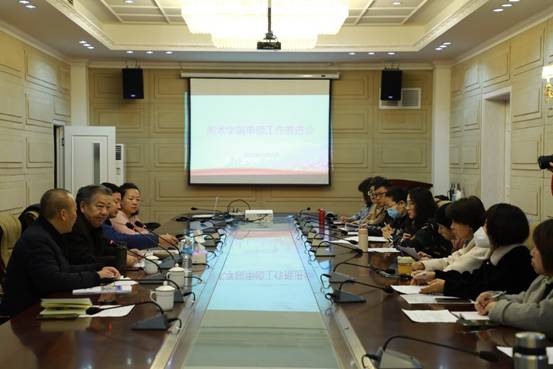 會上,李崇輝就美術學院在碩士點申報中的優勢與不足提出了針對性的指導意見。李崇輝指出,要以申碩為抓手,突出學科建設特色與內涵,明確人才培養定位,服務地方社會,凸顯地域文化特色,整合資源,有效提高申碩工作效率。