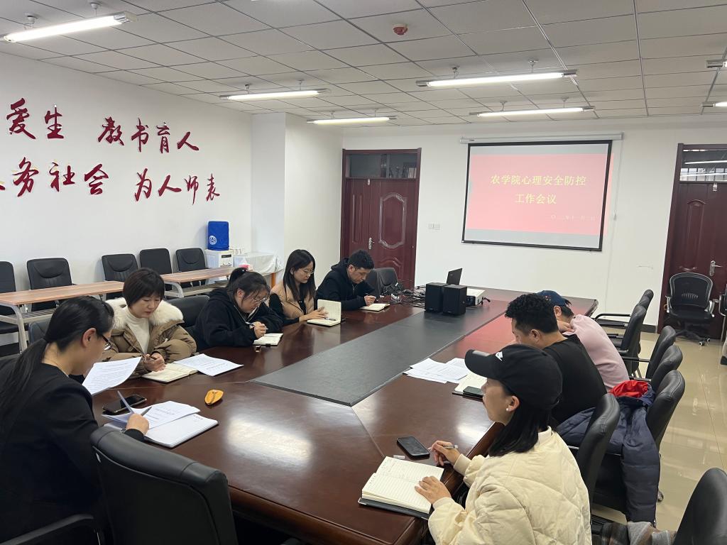 為推進學院心理健康教育工作,提升學工隊伍心理安全防控意識及能力,11月2日,農學院在科技樓317會議室召開心理安全防控工作會議。會議由團學辦主任孟額日敦套格主持,黨總支書記郭晶、專職輔導員、部分兼職輔導員參加會議。