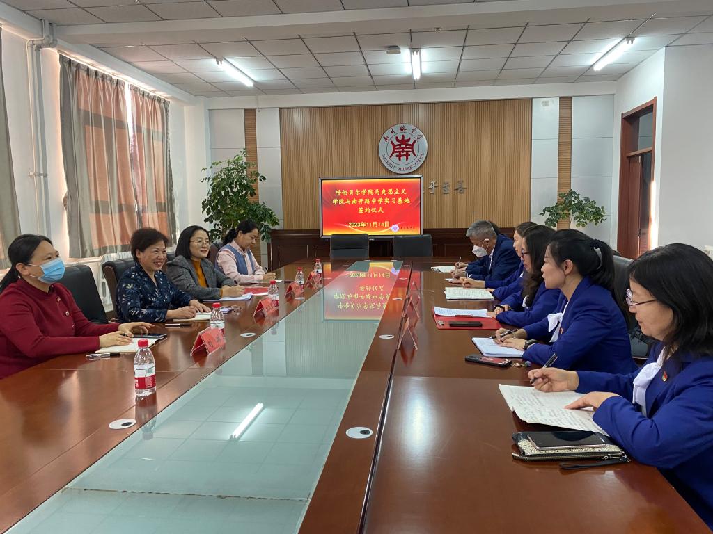 11月14日上午,馬克思主義學(xué)院與海拉爾南開路中學(xué)簽訂了共建教育教學(xué)實(shí)踐基地協(xié)議書。學(xué)院黨總支書記劉鳳琴,院長吳秀芳,副書記劉琳、副院長明蘭和南開路中學(xué)校級領(lǐng)導(dǎo)班子及思政課教師代表參加了此次儀式。