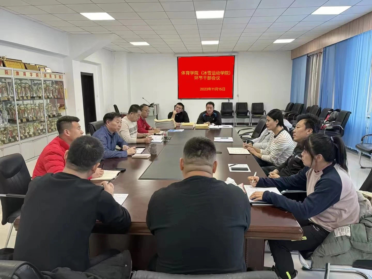 為切實做好期末各項工作,11月15日上午,體育學院(冰雪運動學院)在東山田徑場二樓會議室召開了全體環節干部會議,會議由學院院長李曉峰主持,其他班子成員和全體環節干部參加會議。