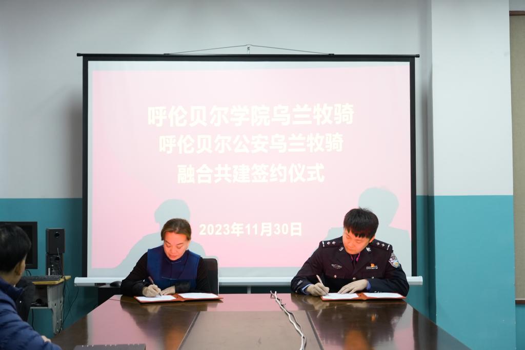 11月30日,我校音樂與舞蹈學院與呼倫貝爾市公安局政治部舉行“呼倫貝爾學院烏蘭牧騎、呼倫貝爾公安烏蘭牧騎融合共建”簽約儀式。音樂與舞蹈學院黨總支書記包德、院長靈芝、副院長劉麗麗、實習實訓中心主任何丹、呼倫貝爾市公安局政治部新聞宣傳科科長張軒參加簽約儀式。