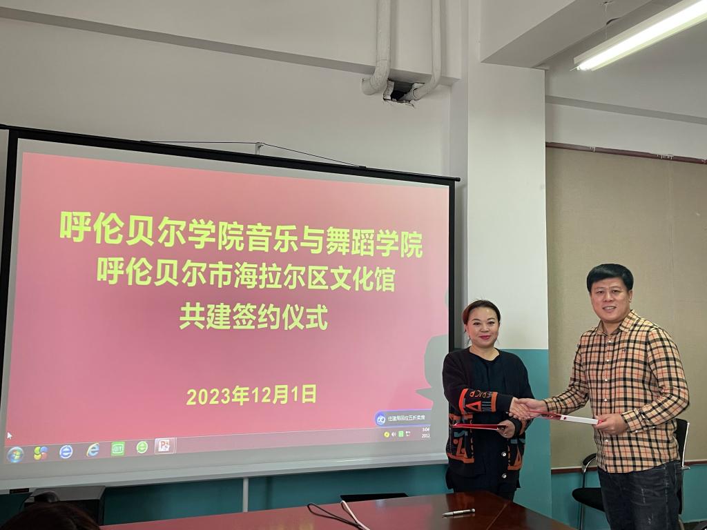 12月1日,我校音樂與舞蹈學院與海拉爾區文化館舉行共建簽約儀式。海拉爾區文化館館長、海拉爾區美術館館長、海拉爾區烏蘭牧騎隊長王志,海拉爾區文化館副館長文華、副館長斯力木格一行來學院參加簽約儀式,音樂與舞蹈學院院長靈芝、副院長劉麗麗、實習實訓中心主任何丹參加儀式。