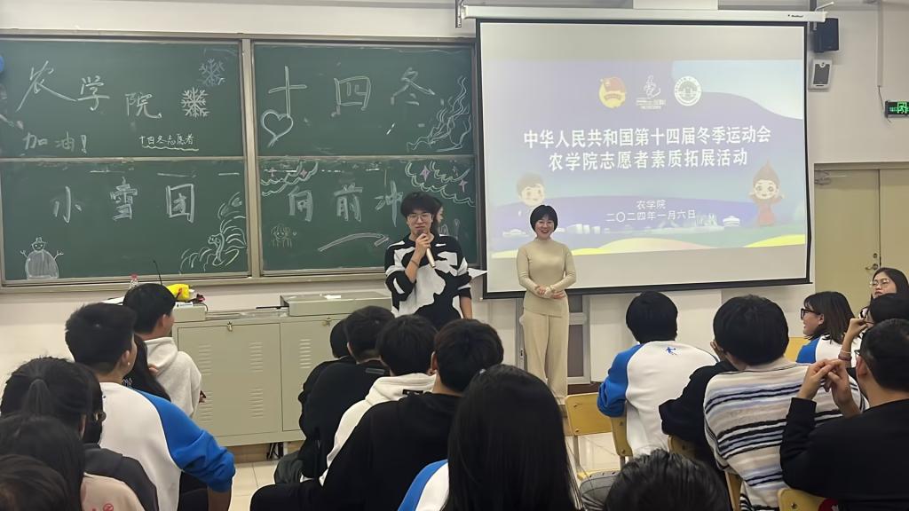 1月6日,農學院組織“十四冬”志愿者在崇文樓B201會議室開展了“相約十四冬”志愿者素質拓展活動。學院黨總支書記郭晶、學工隊伍教師以及學院全體志愿者和演員參加活動。
