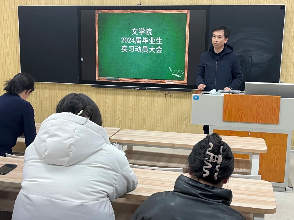 為充分開展2024屆畢業生實習工作,3月8日下午,文學院在崇文樓A409教室舉行了2024屆畢業生實習動員大會。學院黨總支書記核心、副院長李曉玲、實訓中心負責人劉玉環及學院2024屆畢業生參加會議。