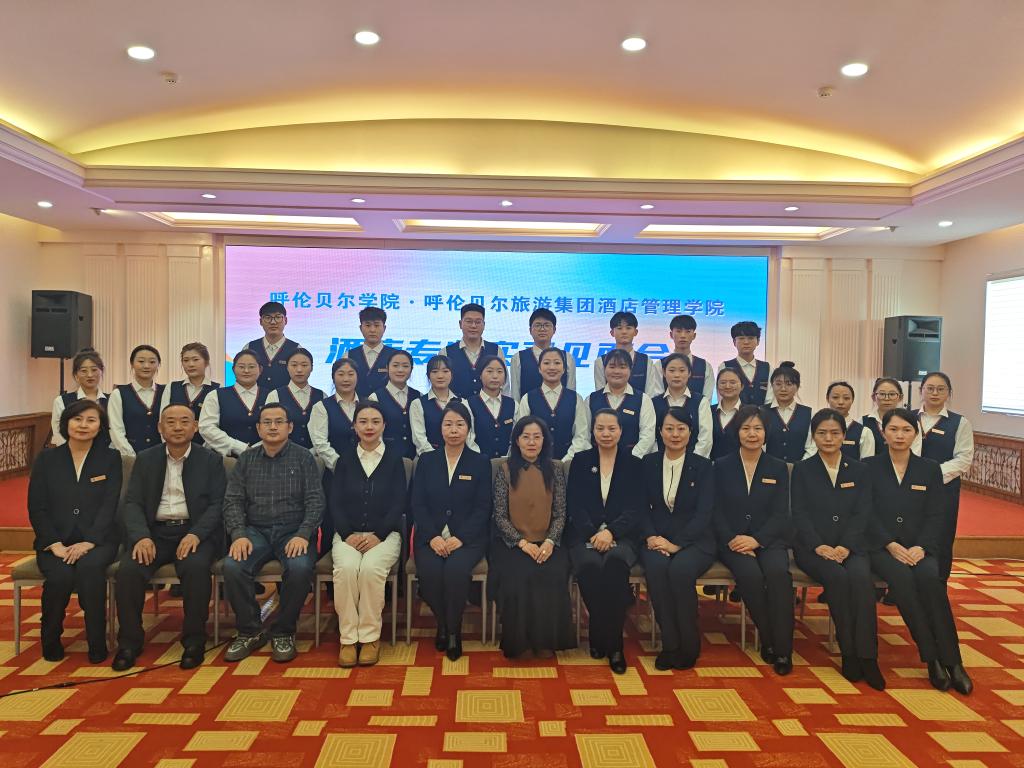 3月10日,呼倫貝爾學院·呼倫貝爾旅游集團酒店管理學院在呼倫貝爾賓館召開2021級酒店管理專業酒店基礎實習見面會。旅游地理與歷史文化學院院長白絮飛、副院長徐舒靜、酒店管理系主任石磊、呼倫貝爾旅游集團呼倫貝爾賓館董事長兼總經理盧曉輝、呼倫貝爾旅游集團行政總監趙永宏及其企業中層管理者參加會議。