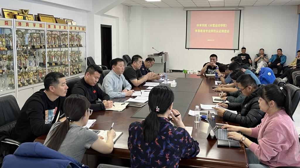 為推進體育學院(冰雪運動學院)的師范專業認證工作,提高師范專業的教學質量和人才培養水平,3月27日下午,體育學院(冰雪運動學院)在東山田徑場二樓會議室召開師范專業認證工作推進會。會議由學院院長李曉峰主持,領導班子成員及全體教師參加會議。
