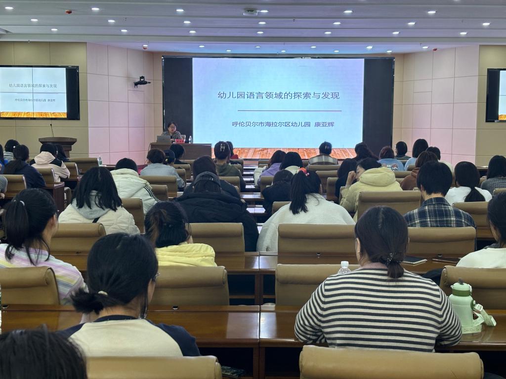 為進(jìn)一步深化學(xué)前教育專業(yè)學(xué)生對幼兒教育領(lǐng)域的認(rèn)識,提升學(xué)生們的專業(yè)能力與職業(yè)素養(yǎng),3月28日上午,在崇文樓A201會議室,教育學(xué)院邀請了海拉爾區(qū)幼兒園副園長康亞輝作了題為《幼兒園語言領(lǐng)域的探索與發(fā)現(xiàn)》的講座。學(xué)院學(xué)前教育系主任楊麗麗主持,學(xué)前教育專業(yè)任課教師及2020級學(xué)前教育專業(yè)120余名學(xué)生聆聽了本次講座。