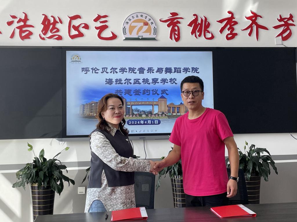 4月1日下午,音樂與舞蹈學院院長靈芝一行赴海拉爾區桃李學校調研并簽約師范生教育實踐基地,海拉爾區桃李學校副校長張向輝及教師代表參加本次簽約活動。