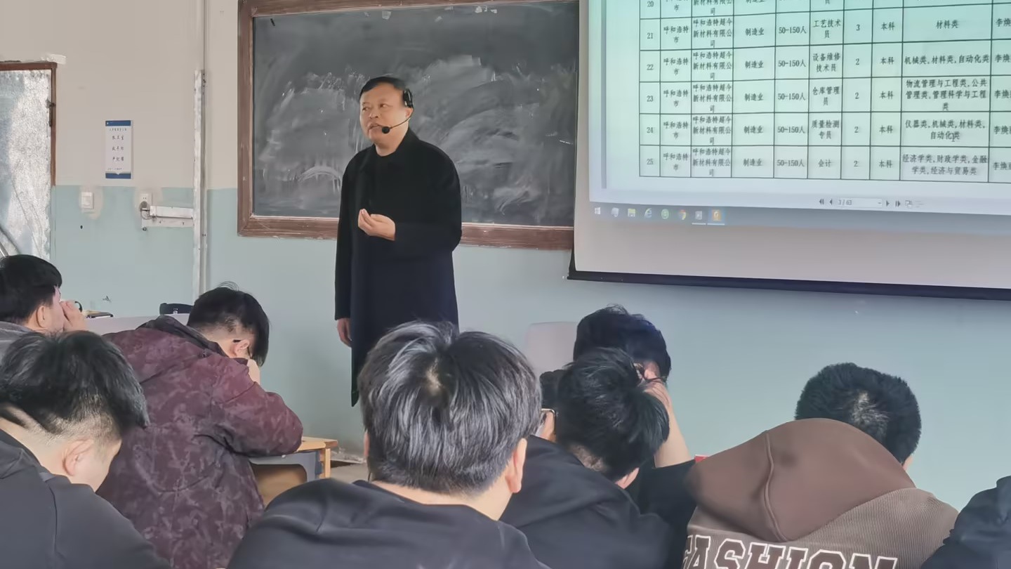 會上,王旭根據4月1日至3日走訪赤峰市各大工礦企業的走訪結果,結合學院本屆畢業生的專業情況和學生實際,圍繞目前的學院的就業現狀,從擇業方向、個人定位、企業選擇等進行系統分析,并列舉往屆畢業生的就業事例進行職業發展規劃展望。他強調,大學生的自我評估和自我期望值應結合實際情況,做出準確的自我定位,職業選擇要站在正確、全面的自我認知上靈活就業。會議臨近結束時,多名畢業生有感而發,說出自己對目前就業前景的憧憬和困惑,王旭一一給與解答。