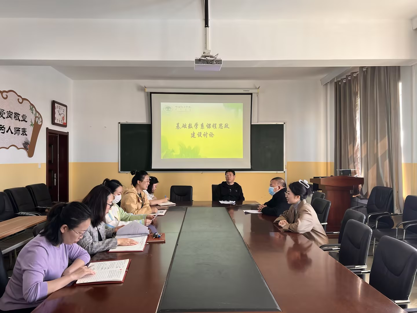 為了提高教學質量、促進教師之間的交流與合作,4月18日,數理學院基礎數學系開展了課程思政研討會。研討會旨在深入貫徹落實全國高校思想政治工作會議精神,推動思政課程向課程思政轉變,完善思想政治教育課程體系建設,充分發揮各門課程的育人功能。