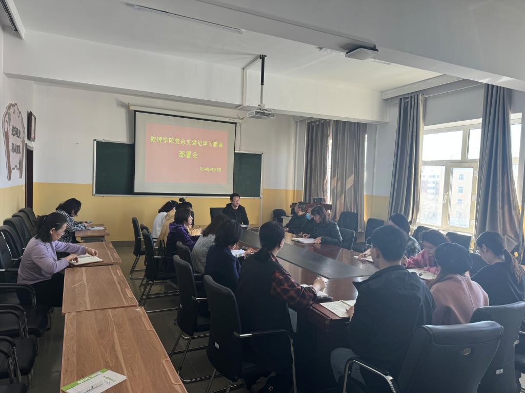 4月18日上午,數理學院黨總支召開黨紀學習教育部署會,傳達學習中央、自治區黨委、呼倫貝爾市委和呼倫貝爾學院關于開展黨紀學習教育的工作要求,部署學院黨紀學習教育工作。數理學院黨總支書記楊巧智主持會議,學院全體黨員參加會議。