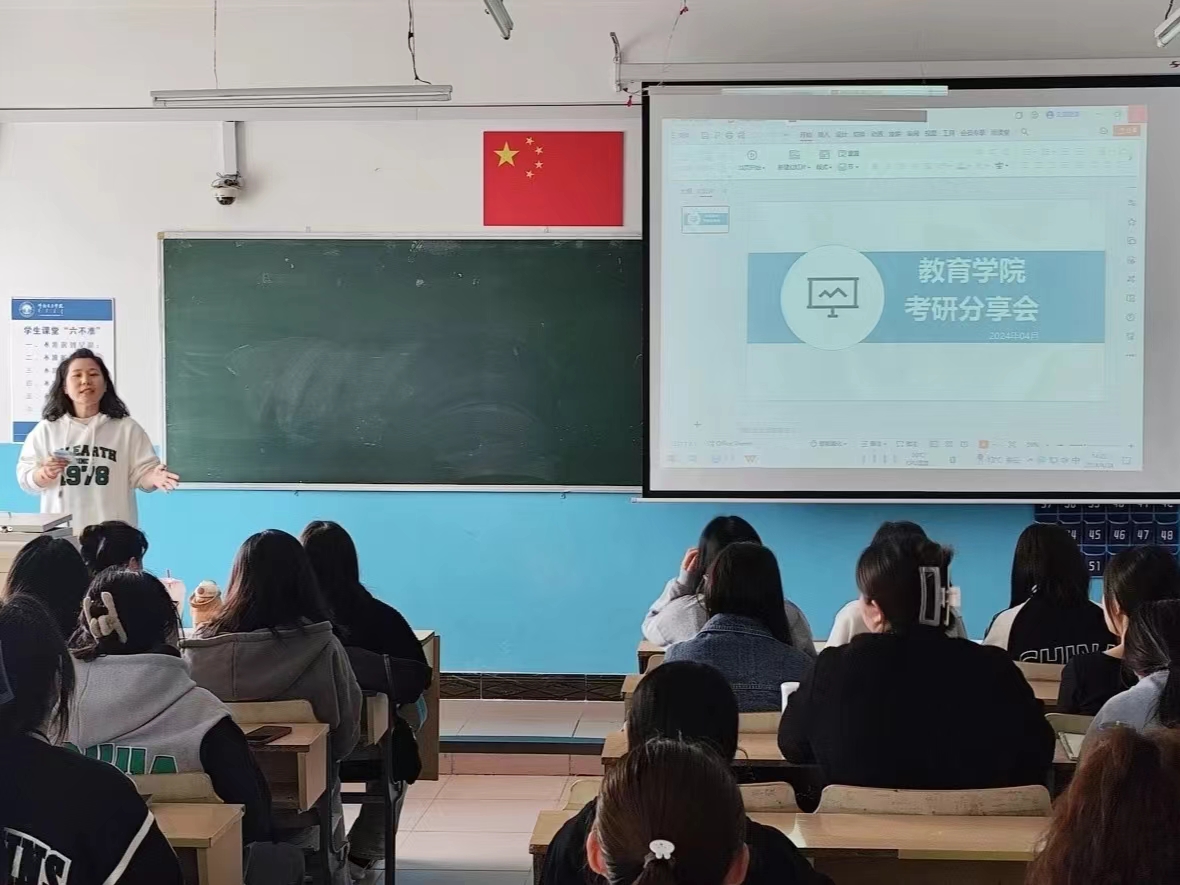 為進一步提高學生考研熱情,了解相關考研資訊,提高備考效率,4月24日下午,教育學院在藝術樓401教室召開考研分享會。本次分享會由學院教師薩仁圖亞主持,邀請2020級小學教育漢本班楊文清同學和2020級心理班趙晴同學作為考研代表主講,學院有考研意向的學生參加。