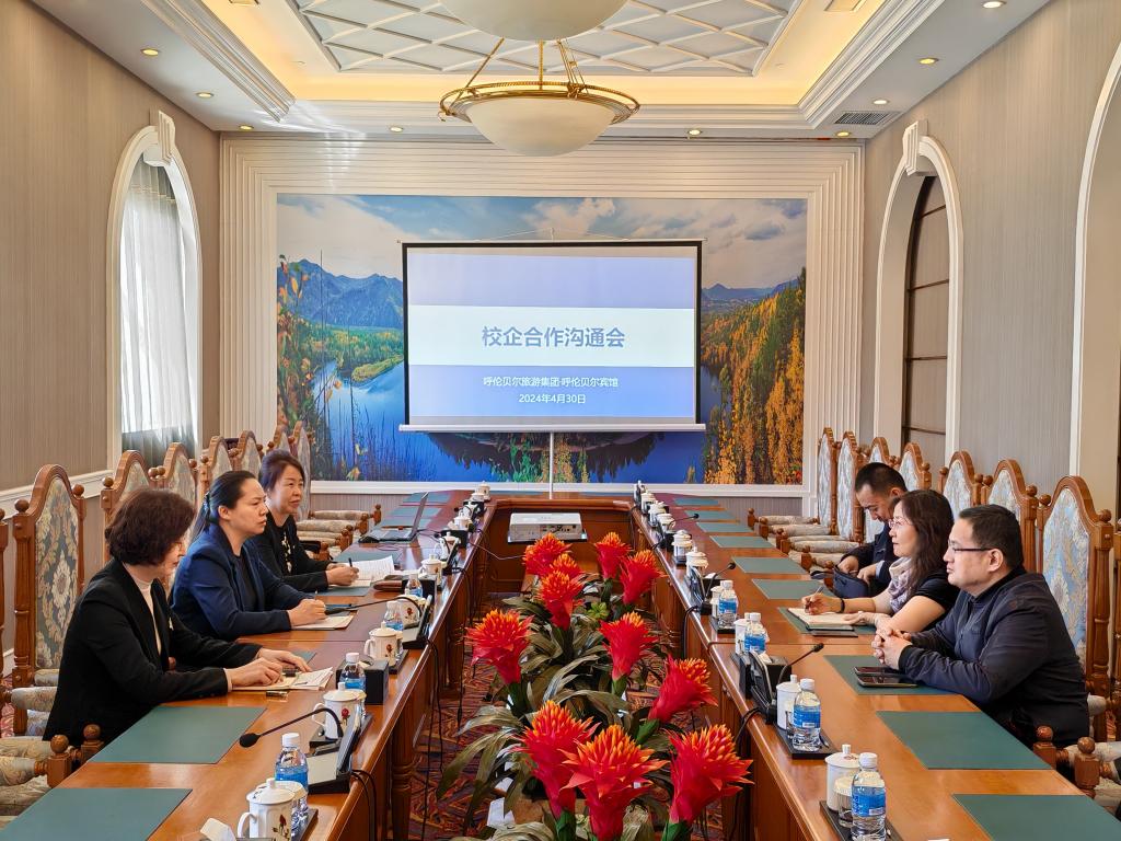 為加強校企間的溝通與交流,準確掌握酒店管理專業實習生的實習情況,4月30日,旅游地理與歷史文化學院黨總支書記趙金輝、院長白絮飛、酒店管理系主任石磊一行三人來到呼倫貝爾賓館看望在這里進行酒店基礎實習的2021級酒店管理專業的實習生,并與呼倫貝爾旅游集團呼倫貝爾賓館領導進行了座談。呼倫貝爾旅游集團呼倫貝爾賓館董事長兼總經理盧曉輝、呼倫貝爾旅游集團行政總監趙永宏、呼倫貝爾賓館綜合部經理劉素華等參加了座談會。