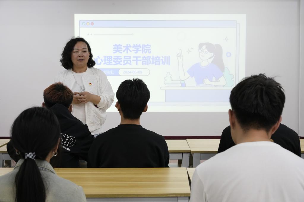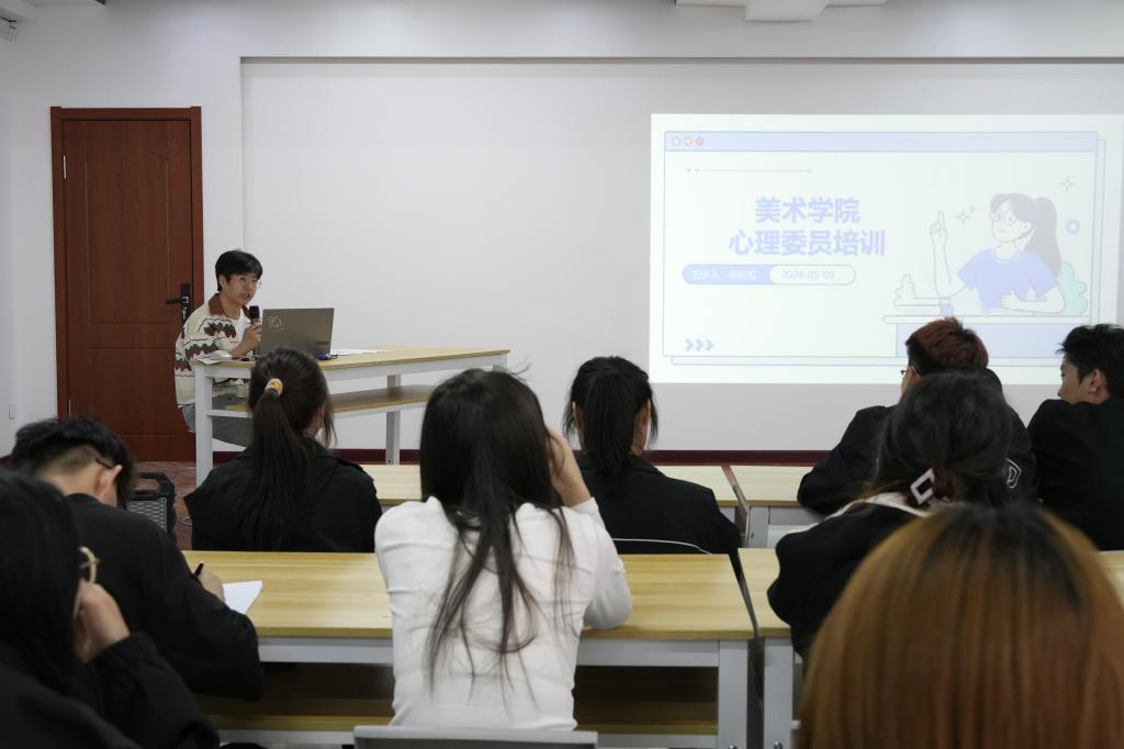 為了夯實學校心理防護網絡,推動學院心理健康教育工作發展,強化各班級心理委員職責,提升服務水平和工作技能,進一步保障學生心理健康,5月9日,美術學院在綜合樓214室舉辦了心理委員培訓活動。本次培訓由學院心理輔導老師郎彩虹主講。2021級、2022級、2023級共34名心理委員參加。
