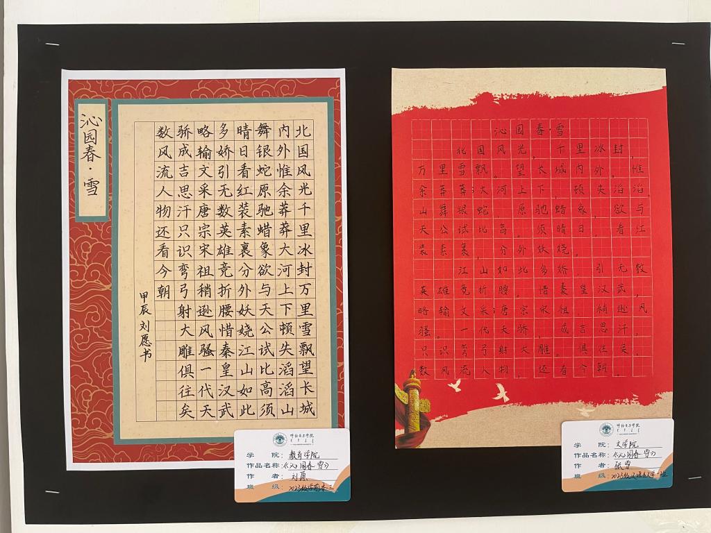 本次書法比賽不僅為熱愛書法的同學搭建了一個互相交流的平臺,還有助于提高師范生的職業技能和專業素質,幫助同學們去追尋紅色印記、傳承紅色基因,使學生們從建功新時代、奮進新征程中汲取強大力量。