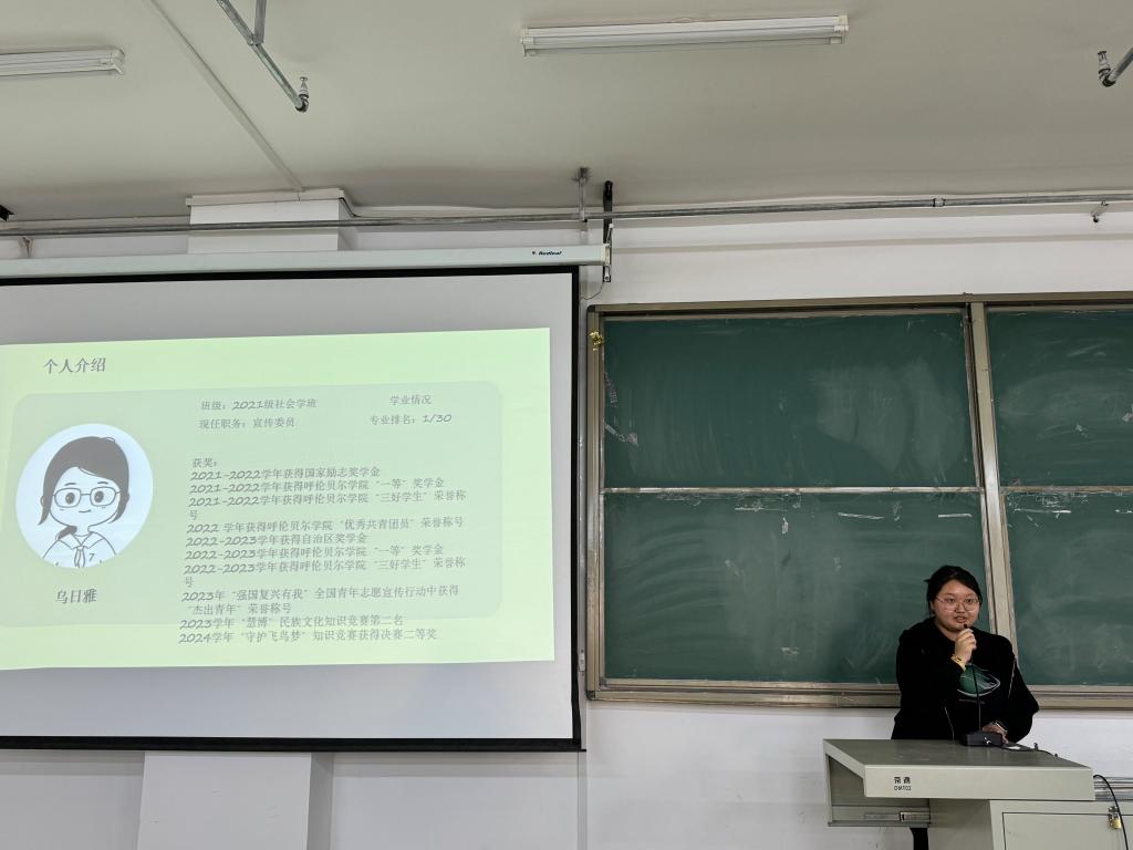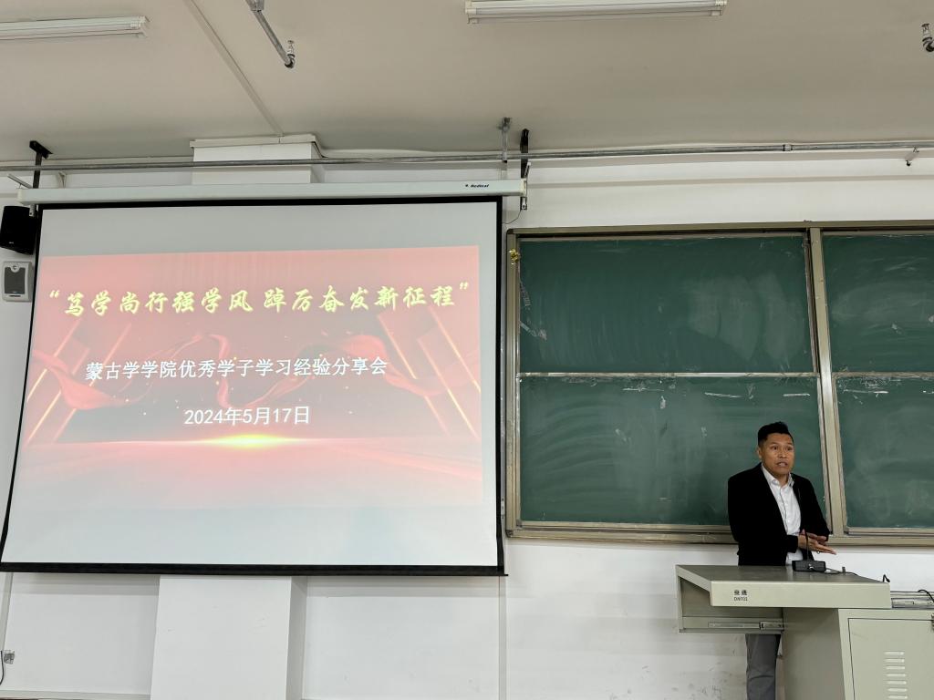 為營(yíng)造良好的學(xué)習(xí)氛圍,引導(dǎo)學(xué)生樹立奮進(jìn)目標(biāo),5月17日晚,蒙古學(xué)學(xué)院在崇文樓B201教室舉辦了優(yōu)秀學(xué)子學(xué)習(xí)經(jīng)驗(yàn)分享會(huì)。2021級(jí)語(yǔ)言文學(xué)一班蘇日古嘎、二班美麗,2021級(jí)社會(huì)學(xué)班烏日雅等三位學(xué)生為大家分享學(xué)習(xí)經(jīng)驗(yàn)。學(xué)院黨總書記格根塔娜、團(tuán)學(xué)辦相關(guān)老師及大一大二全體學(xué)生參加了會(huì)議。