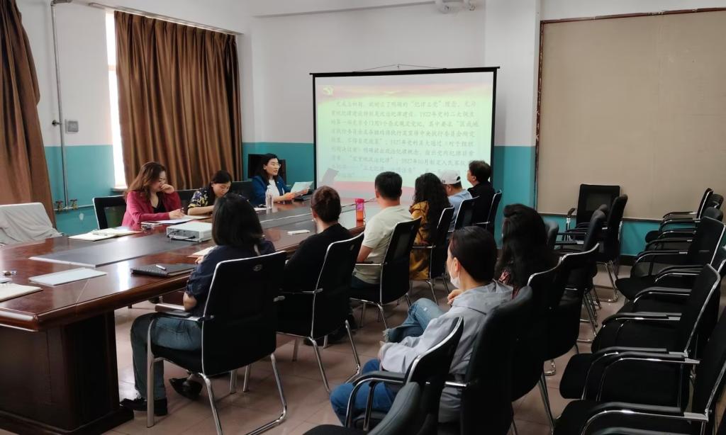 為進一步推進黨紀學習教育走深走實,內化于心、外化于行,6月12日下午,在藝術樓606室,音樂與舞蹈學院黨總支組織開展黨紀學習教育專題黨課。學院教師黨支部書記郭薩如拉以《嚴守黨的政治紀律和政治規矩》為題,為全體教工黨員講授了黨紀學習教育專題黨課。